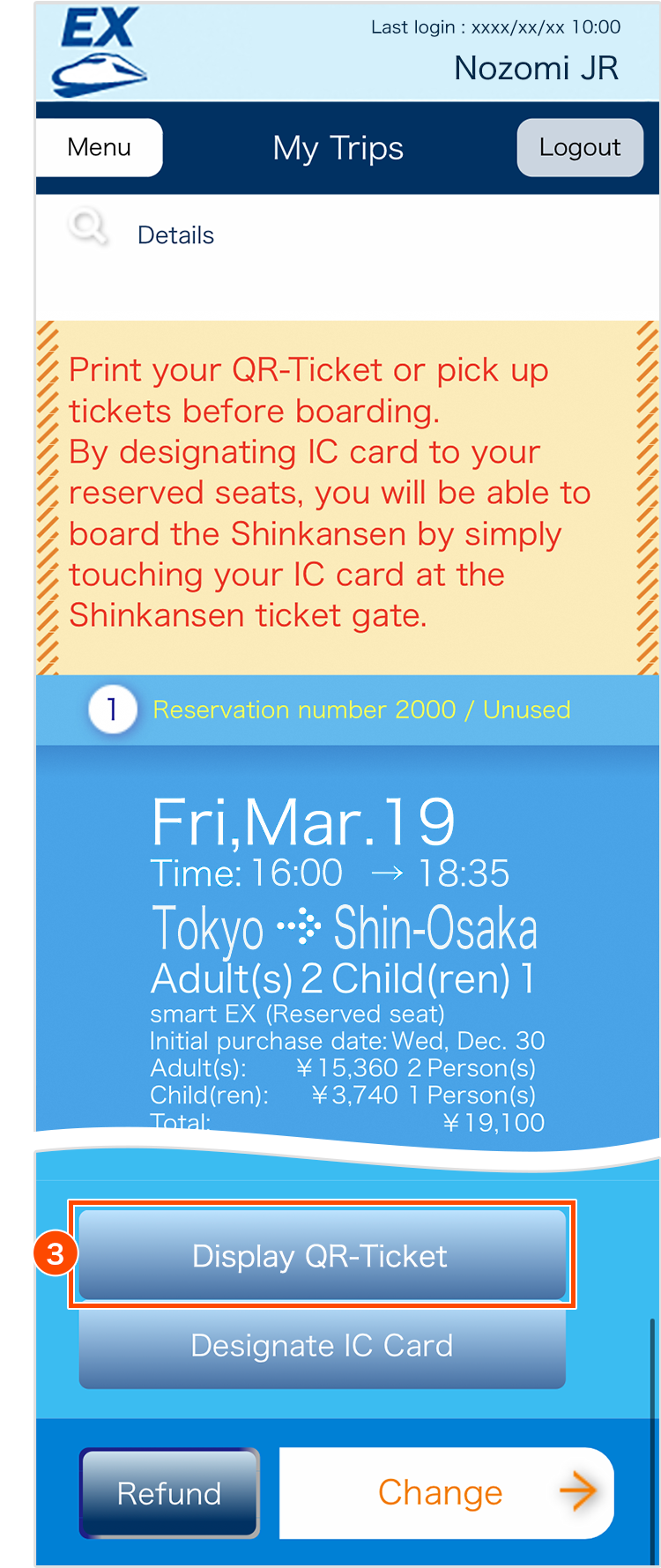 - On some devices, QR-Ticket may not respond to the Shinkansen ticket gate. Please print your QR-Ticket before you arrive at the station.