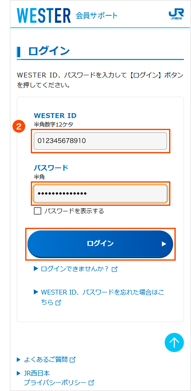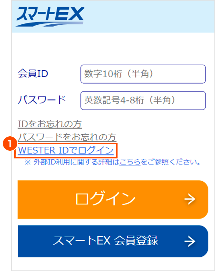 EXアプリをご利用の場合は、ログイン画面下部の「WESTER IDでログイン」をタップしてください。