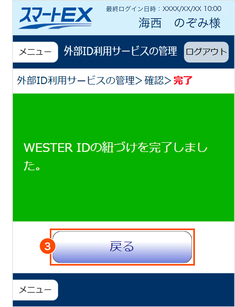 以降、紐づけ登録したWESTER IDでスマートEXをご利用いただけます。