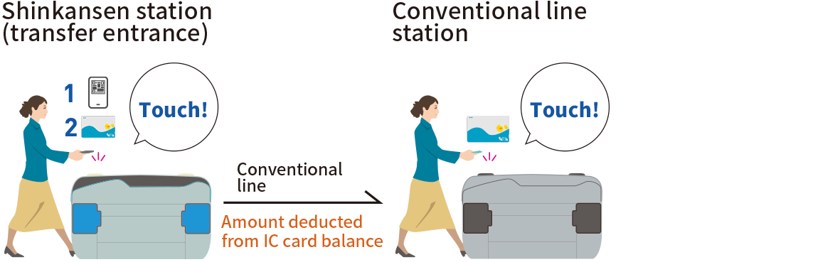 - The fare for the conventional line will be deducted from the balance of your IC card.