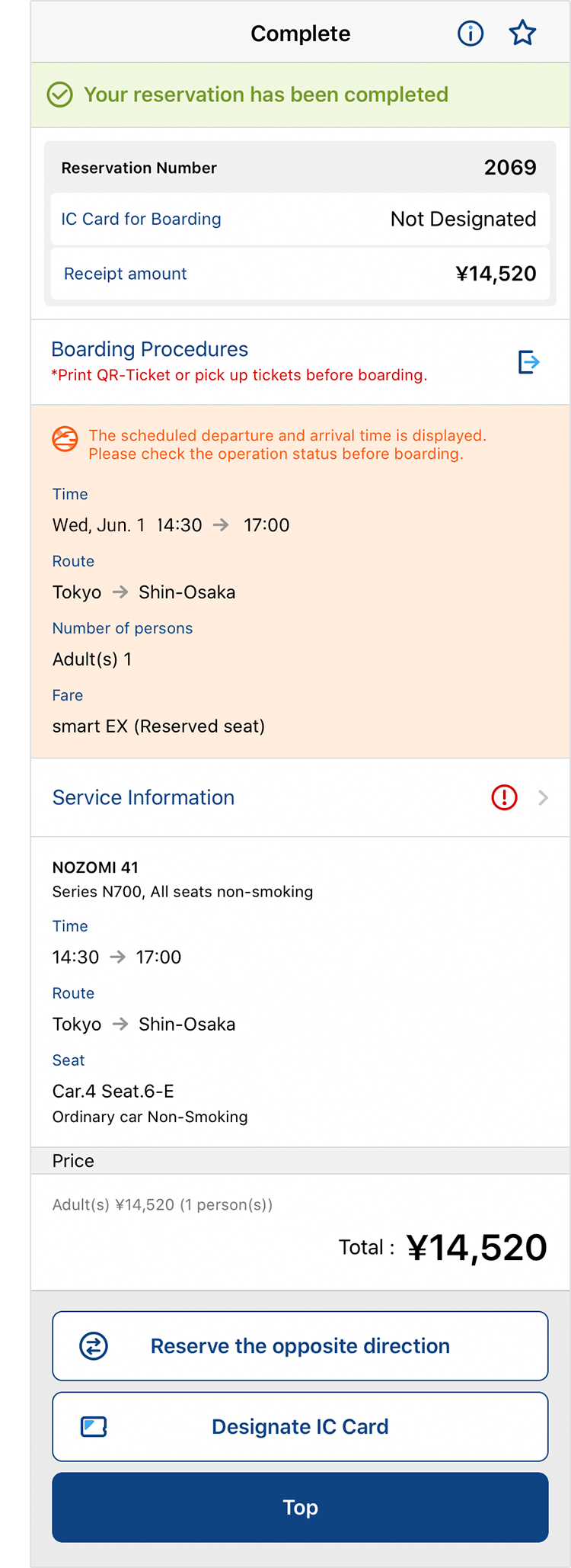 Service status will not be reflected if you search for Kyushu Shinkansen section only. - When delays are anticipated, you can make reservations/changes up to 5 minutes before estimated departure time.