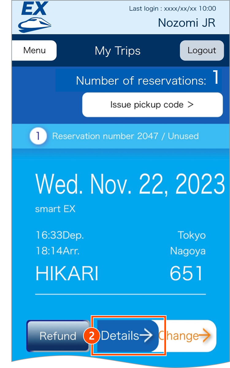 - The reservation detail can be confirmed only on the day if you have picked up your tickets or used your reservation by boarding with QR-Ticket or IC card.