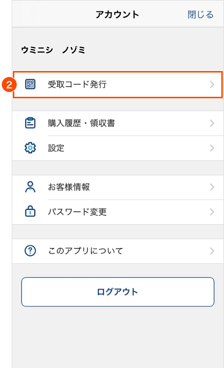 - 以下はスマートフォンでの「受取コード」表示方法です。パソコンからも同様に「受取コード」を表示できます。